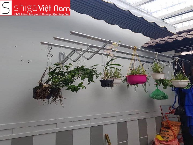 Giàn phơi xếp ngang với chất liệu chủ yếu là inox và nhôm cao cấp, ngoài việc sử dụng để phơi đồ bạn cũng có thể dùng để treo lan, cây cảnh mà mình yêu thích.